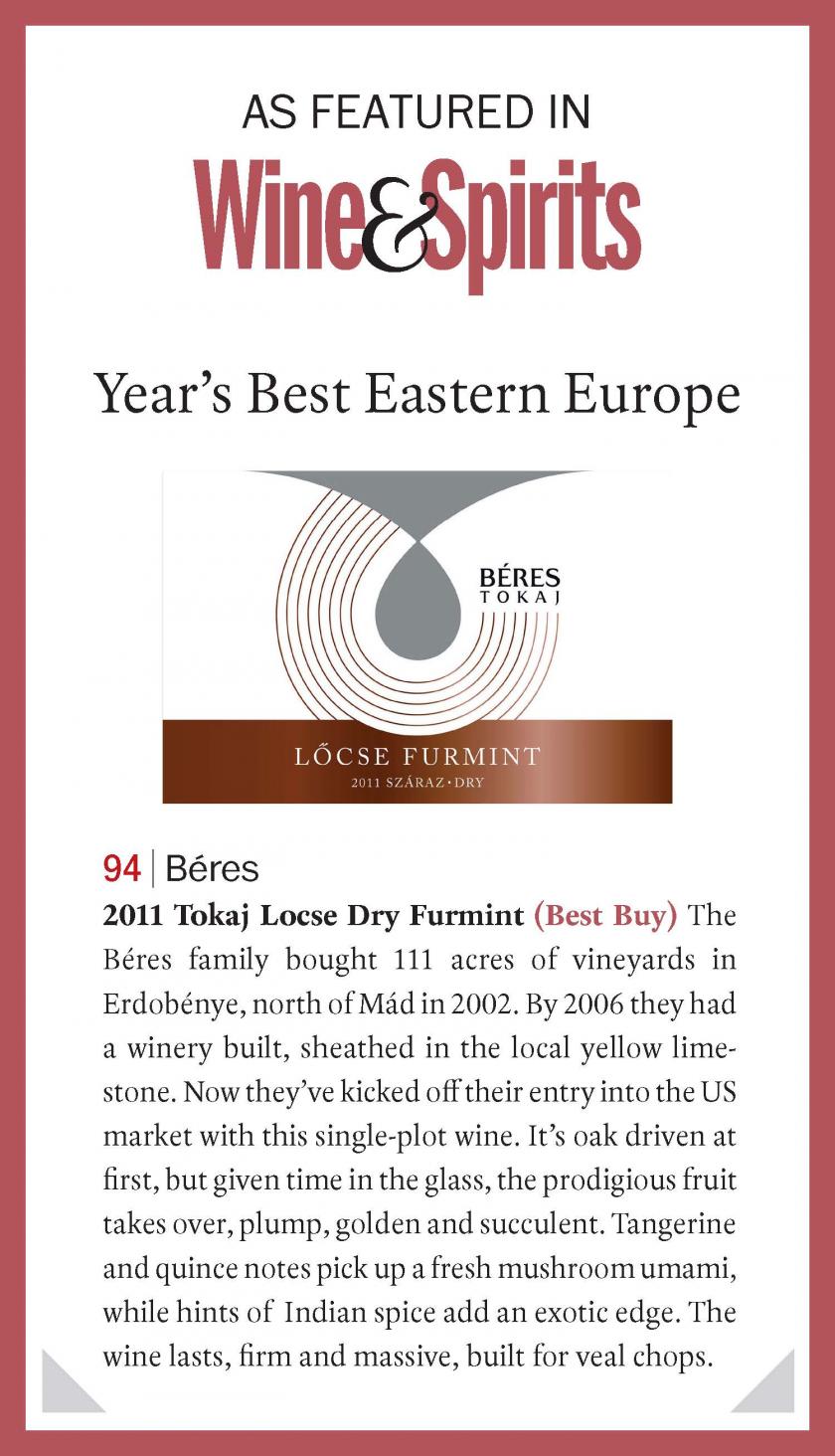 The Wine&Spirits magazine mentioned our Béres Furmint and Lőcse Furmint wines in the top 100 year's best eastern european wines.