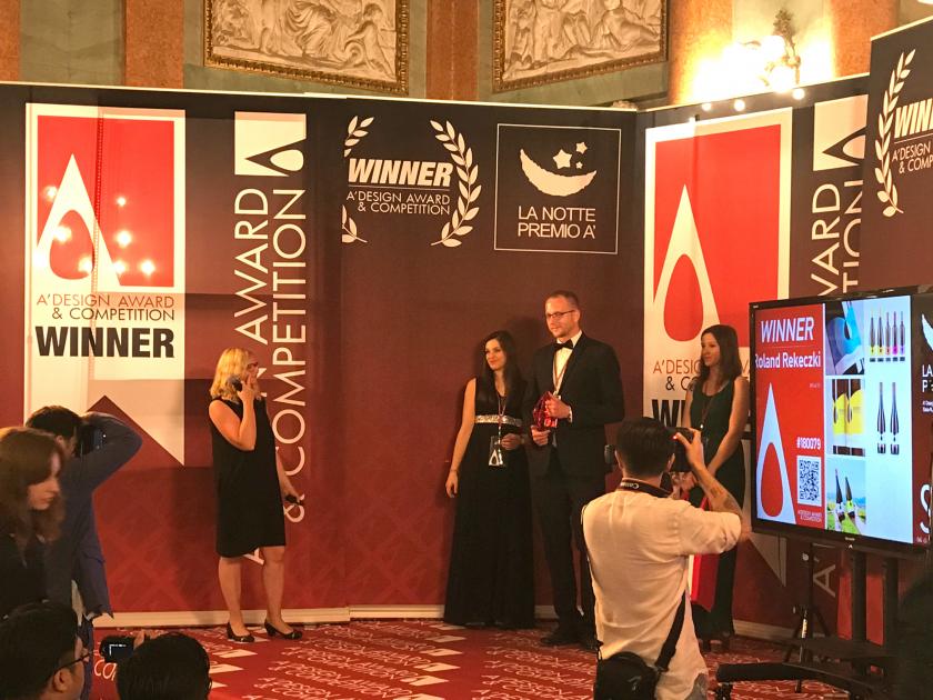 A' Design Award and Competition is one of the most prestigious international design competitions, where Roland Rekeczki, designer of Béres wine labels, has won the Silver A'Design Award in Packaging Design Category this year. In the last 8 years designers from 180 countries took part in the contest with 35 000 works. We were extremely pleased to get to know the fact that Roland won this great award with our wine label family. Roland attended the Gala Night and Award Ceremony last Friday by the beautiful lake of Como in Italy.